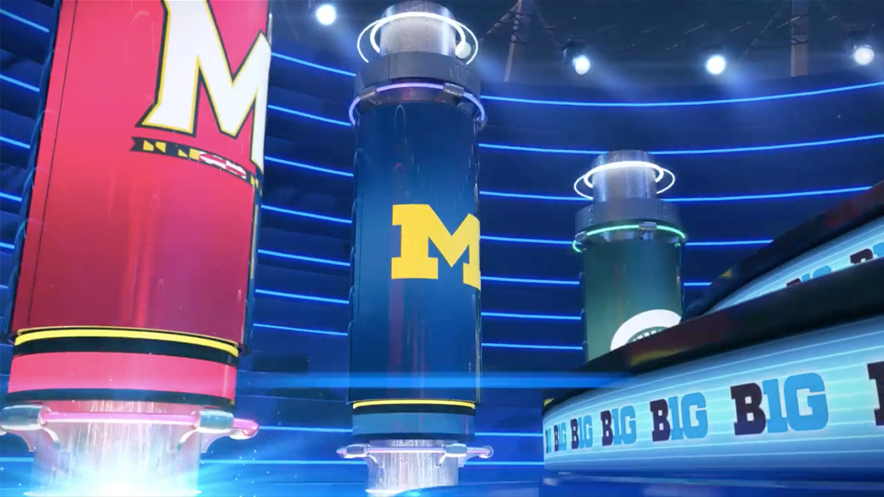 I completed a full studio package (open, cap, rejoin, bug) for the weekly show “Football and Beyond” at the Big Ten Network. Except for the initial layout, I was responsible for taking the project to completion including modeling, lighting, shading, rendering, and compositing. Original concept by Rachel Oftedahl.