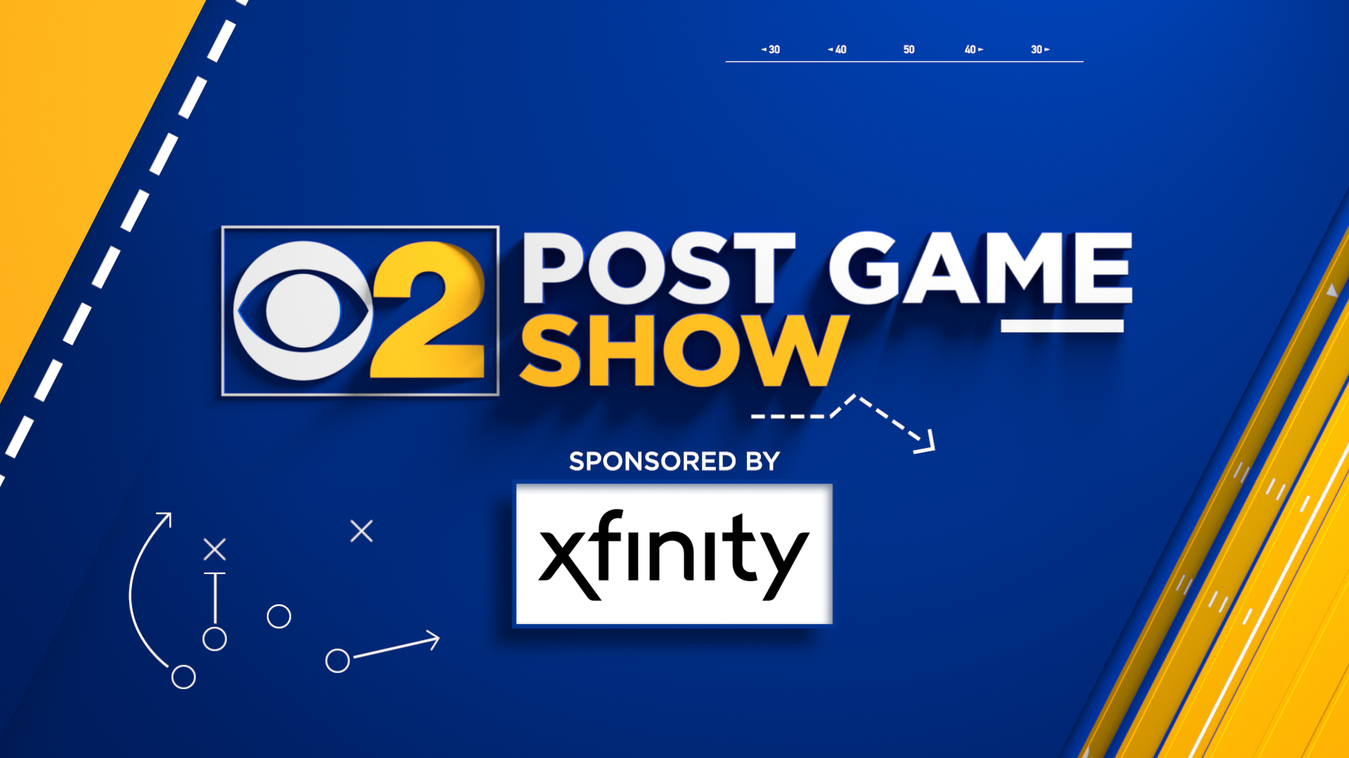 CBS 2 Chicago needed a look for their Post Game Show that would air after NFL games on the local network. Team logos could not be used for legal reasons, so I instead aimed to design a clean look showcasing the bold blue and gold of the CBS 2 logo. The package included a show open, snipe, Viz full screens and studio monitors. Alternate versions were created to allow for both “title” or “presenting” sponsorship.