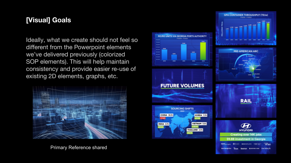 Carousel brought me on to help design a ton of custom content for an event presentation for the Georgia Ports Authority. Graphs, maps, and custom 3D graphics with “pause points” made up a 70+ slide presentation for an event of 250+ people.